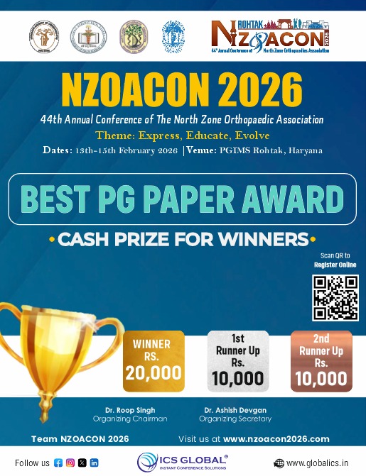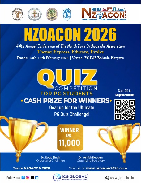 On behalf of the North Zone Orthopaedic Association (NZOA) and the Department of Orthopaedics, PGIMS Rohtak, it is our immense pleasure to welcome you all to NZOACON 2026, scheduled from 13th to 15th February 2026 at PGIMS, Rohtak.